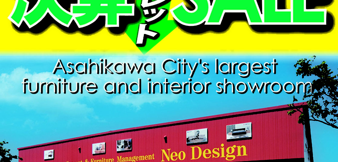 旭川最大級の広さを誇る旭川NeoDesign家具ショールームでは家具インテリア 嵐の「決算アウトレットセール」を開催!こちらの家具ショールームは国内外の有名ブランド家具からアウトレットまで豊富に取りそろえたアットホームなショールームです。あなたのお気に入りがきっと見つかります。もしお気に入りがみつからなければスタッフにお声かけください。お気に入りの展示がなくっても必ずスタッフがあなたの家具インテリア探しのサポートをいたします。是非、お気軽にいらしてみてください。
